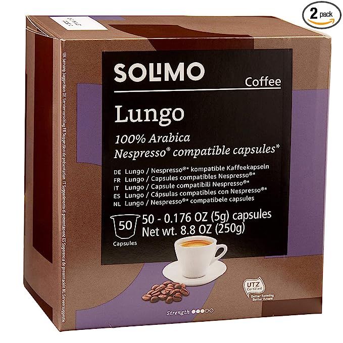Introducing Amazon's newest private label coffee product: The Solimo Lungo Capsules. Carefully crafted for use with original coffee brewers, this medium roast lungo capsule pack contains 100 capsules, conveniently divided into two sets of 50. With compatibility spanning various original brewers, these capsules offer versatility for all coffee enthusiasts.