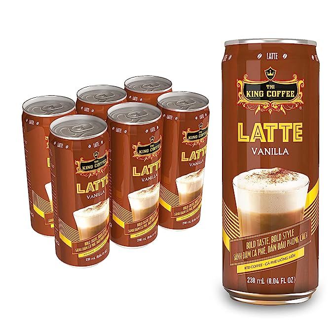 Instant Latte Vanilla Coffee, King Coffee's Signature Flavor, 8.04 Fl Oz Can 238 ml (Pack of 6)