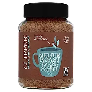 Clipper Fairtrade Organic Instant Medium Roast Arabica Coffee is a top-tier instant coffee made from the best Arabica beans, carefully selected from Fairtrade certified producers. It holds the organic certification, ensuring that it is cultivated and processed without the use of harmful synthetic fertilizers and pesticides.