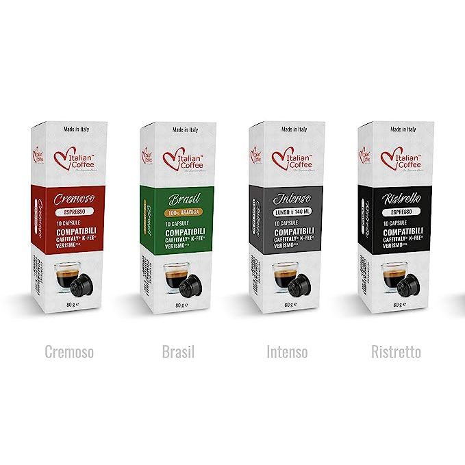 Italian Coffee Capsules for Verismo, CBTL, Caffitaly, and K-fee Systems (Includes Sampler Pack with 4 Flavors, Total of 40 Pods, Excluding Decaf)