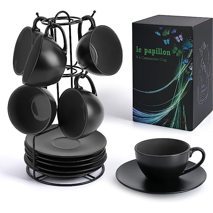 With its sleek black color, the Le Papillon Collection seamlessly complements any kitchen decor, instantly adding a touch of sophistication to your coffee collection. Be it entertaining guests or merely indulging in a solitary coffee moment, the set's six cups offer versatility and style.
