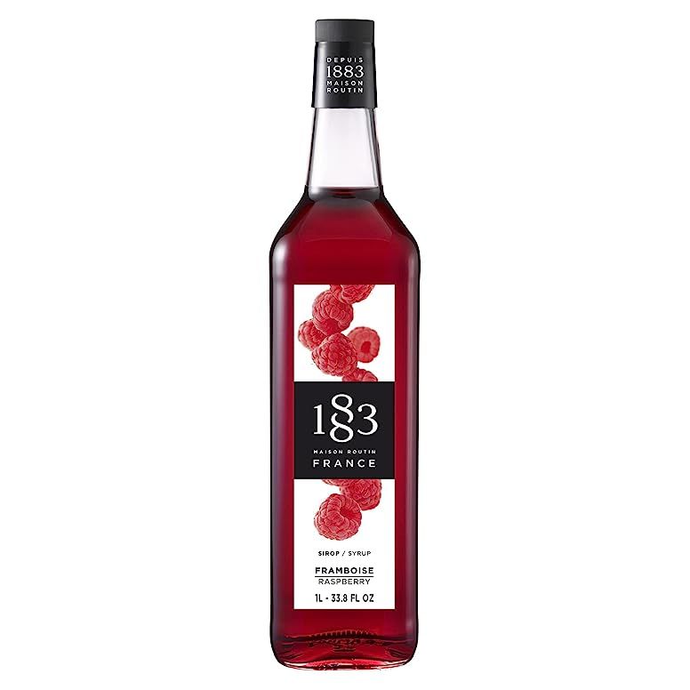 1883 Raspberry Syrup - Premium French Beverage Enhancer - Pure, Invigorating Flavor - Crafted for Hot & Cold Drinks - Healthy Choice - Ethically Sourced & Freshly Bottled - Large Glass Container 1 Liter