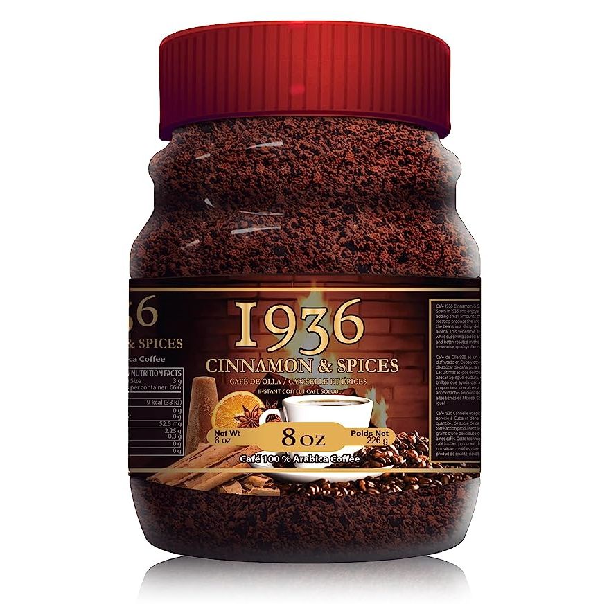 1936 Cinnamon and Spice Arabica Instant Coffee - Smooth and Pure medium roast - Sweetened with Cane Sugar - Gluten Free and Kosher Certified - Non GMO - 8 oz