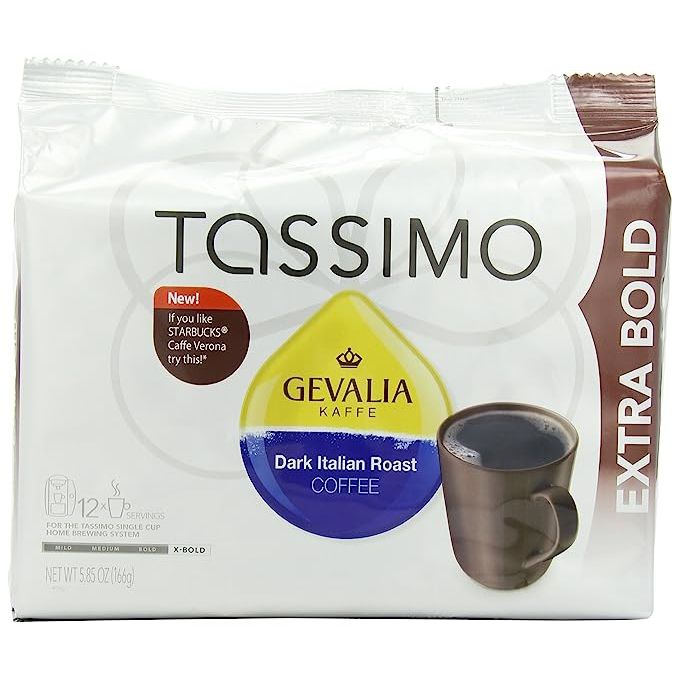 Gevalia Dark Italian Roast Coffee - Extra Bold - T Discs for Tassimo Brewers are conveniently packed in a 1-pack, providing you with an ample supply to enjoy at home or in the office. Each T Disc contains the ideal amount of coffee grounds, guaranteeing a consistently delicious cup of coffee with minimal effort required.