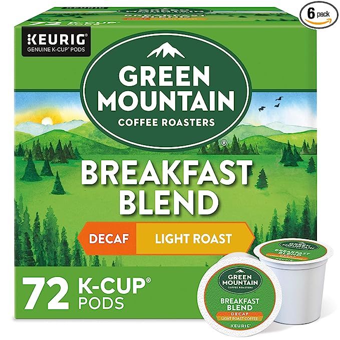 Green Mountain Coffee Roasters presents their delightful decaffeinated coffee, the Breakfast Blend. Specially packaged in easy-to-use Keurig K-Cup Pods, this light roast coffee caters to those who prefer a milder flavor experience or wish to enjoy a cup without the effects of caffeine. Available in a generous pack of 72 pods, you can ensure a steady supply of your favorite decaf brew, all designed to seamlessly work with your Keurig coffee machine, guaranteeing a freshly brewed cup in mere minutes.