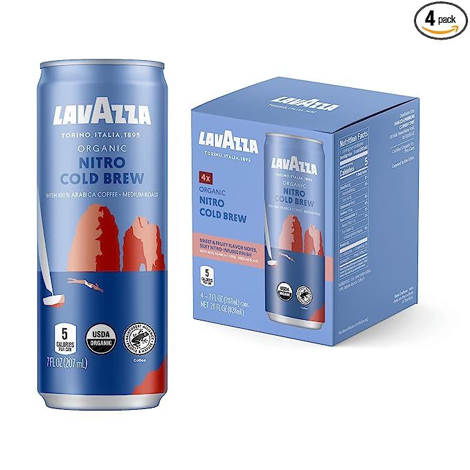 Organic Nitro Cold Brew Coffee by Lavazza, Pack of 4 Cans, 7 Fluid Ounces Each